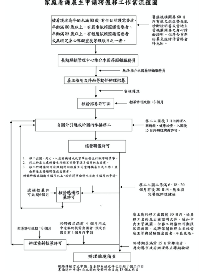 雇主、仲介申請、登錄流程--連結 家庭看護雇主申請聘流程圖--連結 申請外籍看護基本資料傳遞單--連結